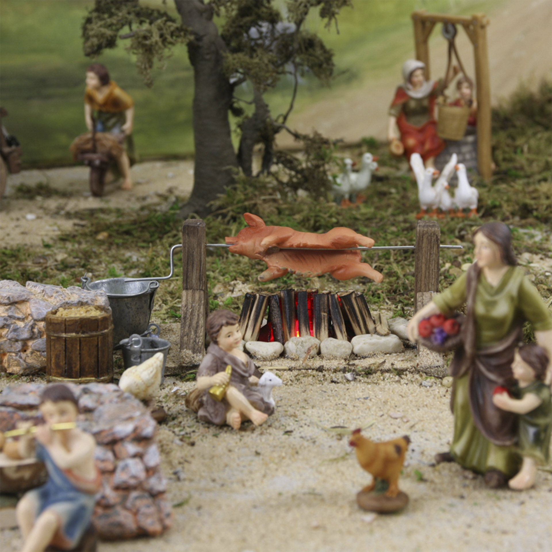 Zubehör Krippe Spanferkel am Lagerfeuer.